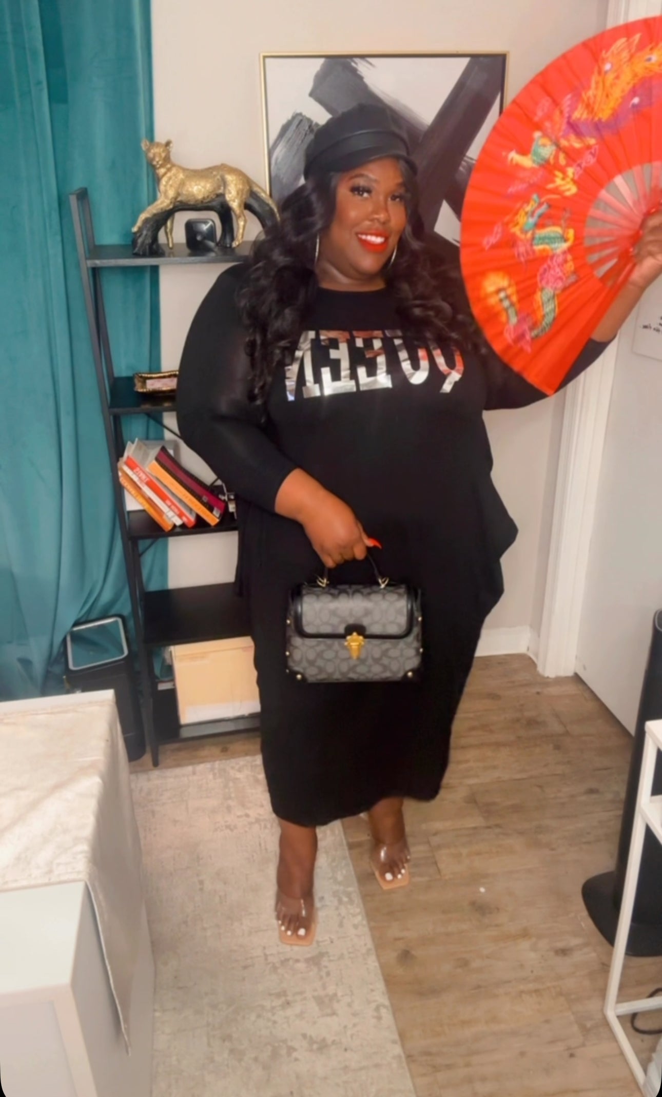 Command attention in this sleek black dress featuring bold silver "QUEEN" lettering that lets everyone know who's in charge. Designed with a comfortable, stretchy fit, this one-size piece flatters sizes Medium to 4X, draping effortlessly for a confident and regal look. Whether youβre dressing it up with heels or keeping it casual with sneakers, this dress is all about style, comfort, and QUEEN energy.